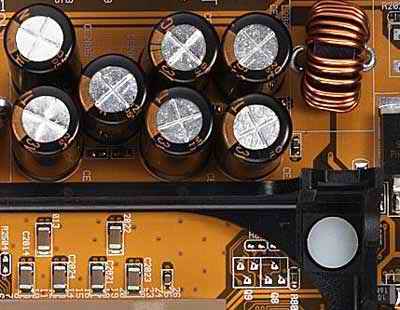 许多品牌主板在CPU槽附近都使用了3300微法左右的多个大容量电解电容器附加贴片电容的设计,以充分保证CPU工作时电压和电流的稳定性。